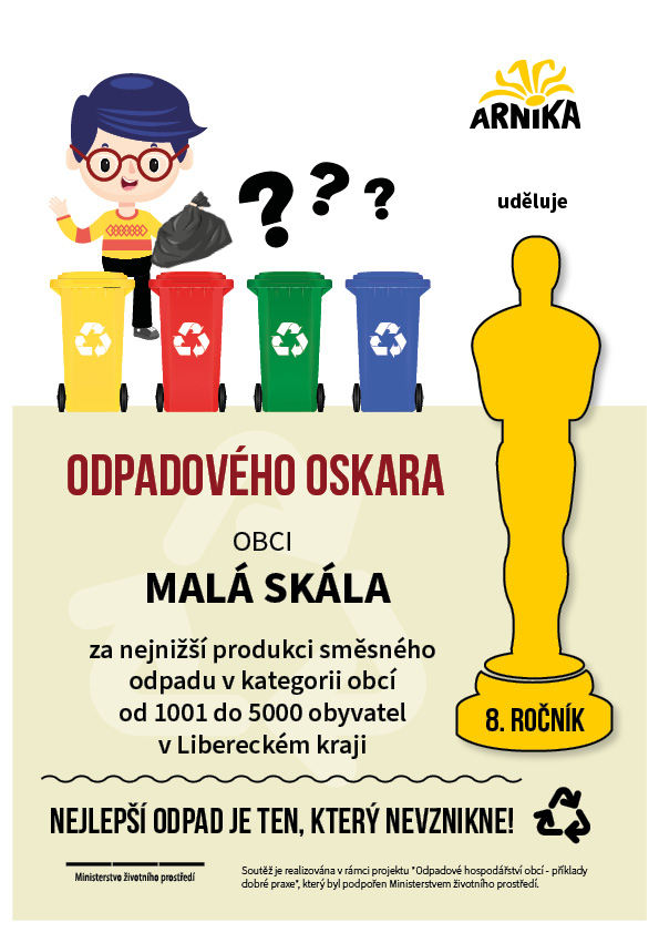 Od druhého ročníku se účastníme soutěže Odpadový Oskar, která vyhodnocuje množství směsných odpadů, které vyprodukují občané jednotlivých obcí a míru třídění. I letos jsme vyhráli a Odpadového Oskara získali v Libereckém kraji v kategorii obcí s počtem obyvatel 1001 – 5000 posedmé v řadě. Tentokrát s 81,5 kg na obyvatele za rok 2021 (o 4,4 kg na obyvatele za rok méně oproti roku 2020). Úroveň třídění se u nás zvýšila o 1,3% na 53,3%.